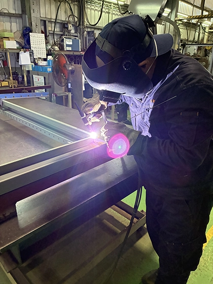 高度な溶接技術で製品を完成させていきます。製品の目的に合わせて様々な溶接をおこなっております。(半自動溶接、ティグ溶接、アーク溶接)