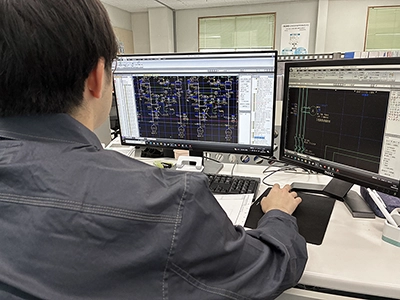 お客様から頂いた要望や原図をもとに、電気製図用のCADソフトを駆使し 盤の外形図・単線結線図・シーケンス図を作図します。